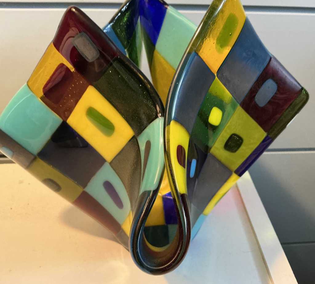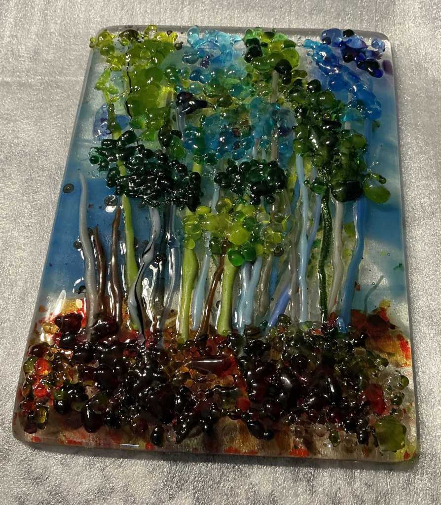 My name is Barb Belland and I do fused glass. I love working with glass. It is so nice when you finish a piece and hold it to the light and it just glistens. I am mainly self taught although I have taken a few classes and worked with some great glass artists. I have tried stain glass but I love fused glass. There are so many wonderful things you can do with glass when it is heated in the kiln. After being a letter carrier for almost 25 years it is so nice to sit and let my imagination inspire my glass works.