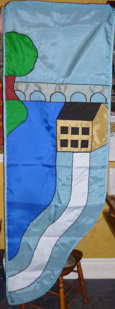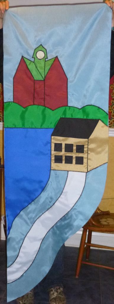 In 2013, several 4A members noticed that the street banners in Mississippi Mills could be improved. They felt that the commercially produced banners in use did not adequately reflect the rich textile heritage of the town. As a result, the members designed three banners that were later sewn by local textile artists/quilters/sewers with materials provided by the municipality. With three different municipal wards, a single banner pattern was not suitable for capturing the uniqueness of each ward. However, there needed to be a common element in each pattern to unify the look of Mississippi Mills. The results are shown below and during the summer months you could see these banners on display throughout Mississippi Mills.