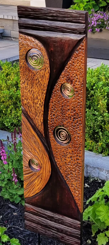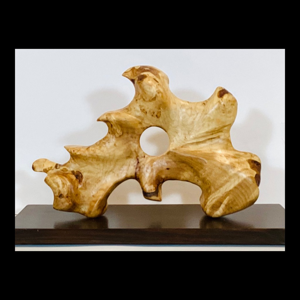 My love of wood and sculpting has drawn me back to my roots but with more abstract and mixed media aspects where I use glass, copper, metal paint, burning and plexiglass elements in my sculptures. I am inspired by the wood I work with and follow it where it takes me. I am also inspired by many great modern sculptures in wood, metal, stone and concrete all of which I have experimented with.
