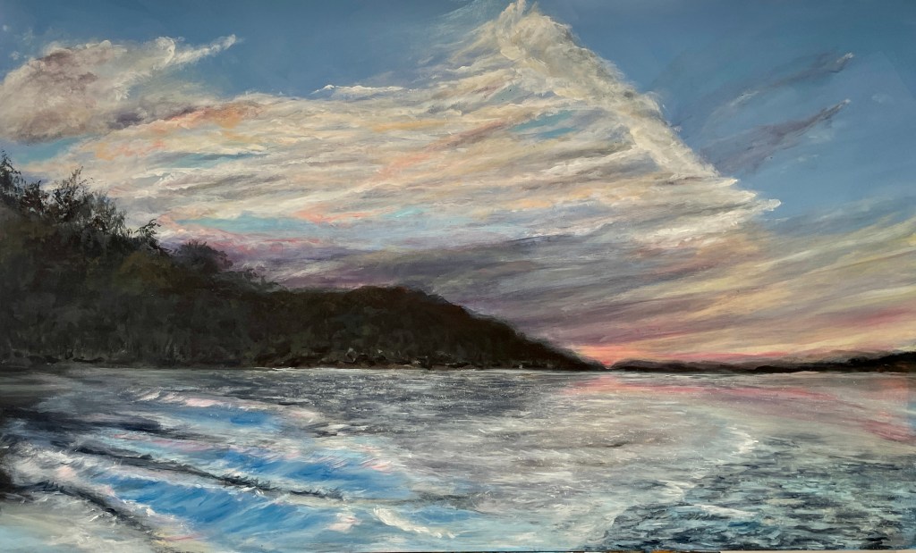 Sandra’s art is a reflection of the light, shadows, and layers of life. The result is a depiction of the energy and the flow that permeates the subject and surrounding environment. Acrylic on canvas allows the display of vibrant colours and bold proclamations of what nature has to offer. Watercolour offers the flexibility of transparency, and the ability to manage flow with a very light touch. This commitment to understanding the flow and layers in life is ever present in Sandra’s pieces.